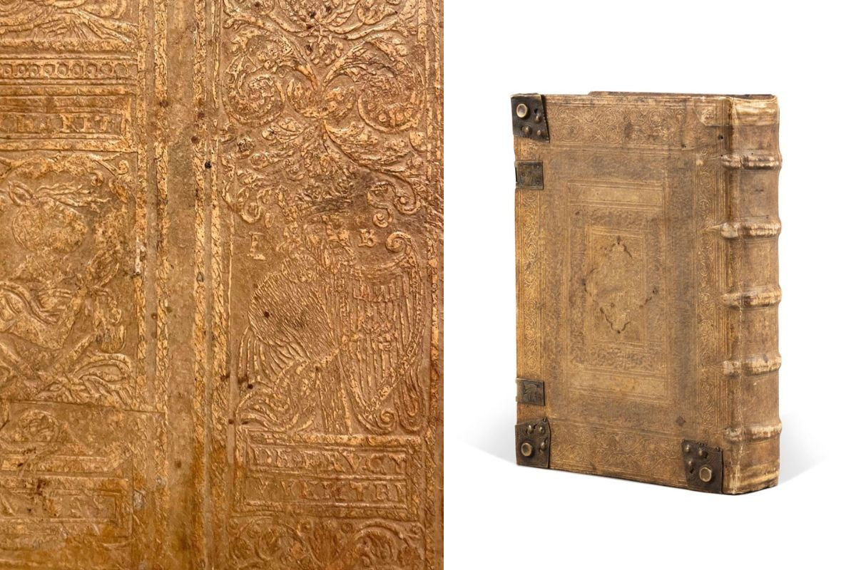 The mahzor’s binder – most likely Cologne craftsman Iohannes Bohnenberg, identified by the initials “IB” – took unusual care to preserve the Jewish manuscript. “A close examination of the binding reveals the hand of a skilled craftsman whose work was accomplished with the greatest sympathy for the text,” the description notes. Its pages, which would have typically been trimmed for uniformity, were left intact, preserving marginal annotations in Hebrew and Yiddish that document variations in local customs.