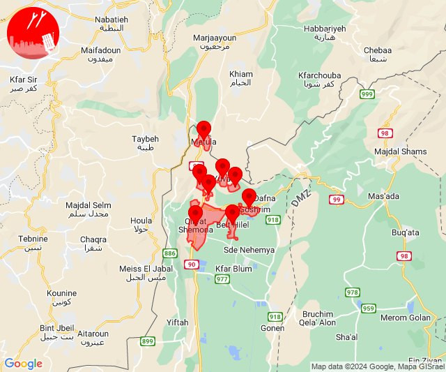 A barrage of 20 rockets was fired a short while ago from Lebanon at the Kiryat Shmona area, according to the IDF.