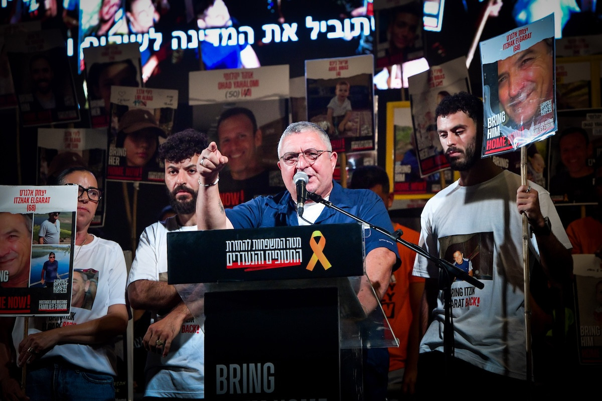 The protests in Tel Aviv, which are led by the Hostages and Missing Families Forum, focus on the demand for a hostage release deal. The organization has a policy of nonpartisanship, and does not actively take part anti-government protests. On Saturday evening, the forum showed a video recorded by recently-rescued hostage Noa Argamani, calling on the public to remember the hostages and “do everything possible to bring them back home.”