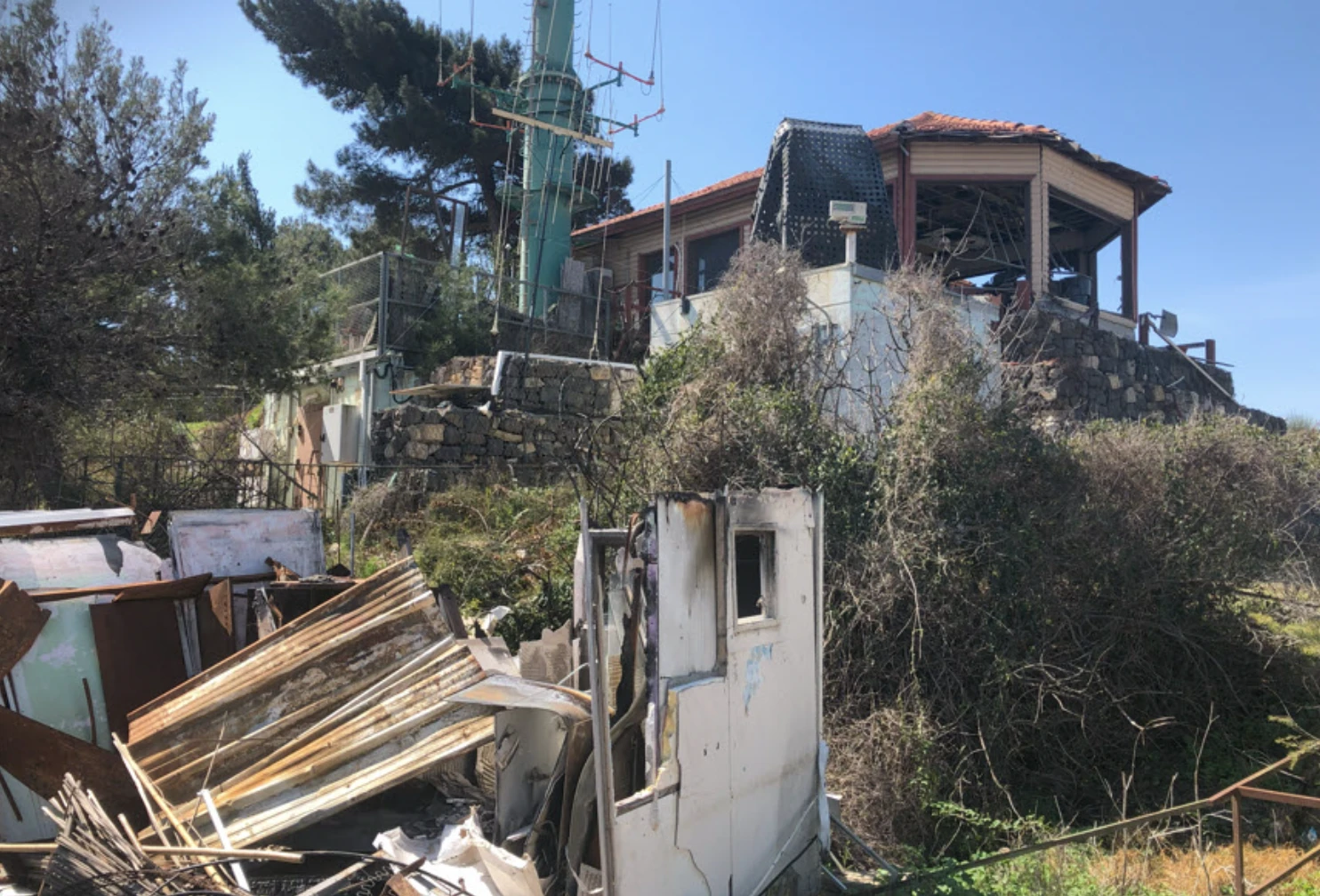 As you look up from the prayer site, you can see the evidence of rocket fire. The former army barracks and the Mitzpor (lecture hall for visitors) took extensive rocket hits.