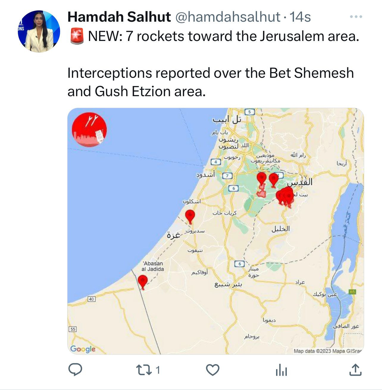 JERUSALEM, ISRAEL — Palestinian Islamic Jihad terrorists operating in Gaza just fired a salvo of rockets at Jerusalem for the first time in this week’s new rocket war.