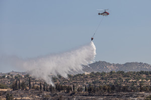 On Sunday, a wildfire broke out in the valley between Kiryat Ye'arim and Giv'at Yearim, in the Judean hills near Highway 1.