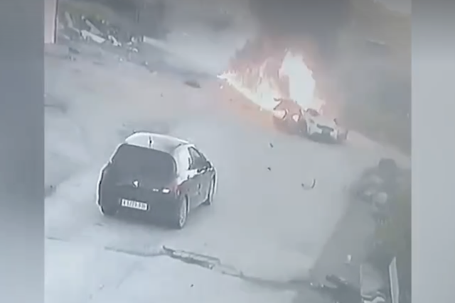 Surveillance camera footage shows the Israeli drone strike on a vehicle with Palestinian gunmen in the West Bank city of Jenin earlier. pic.twitter.com/J33VEIEv1h
