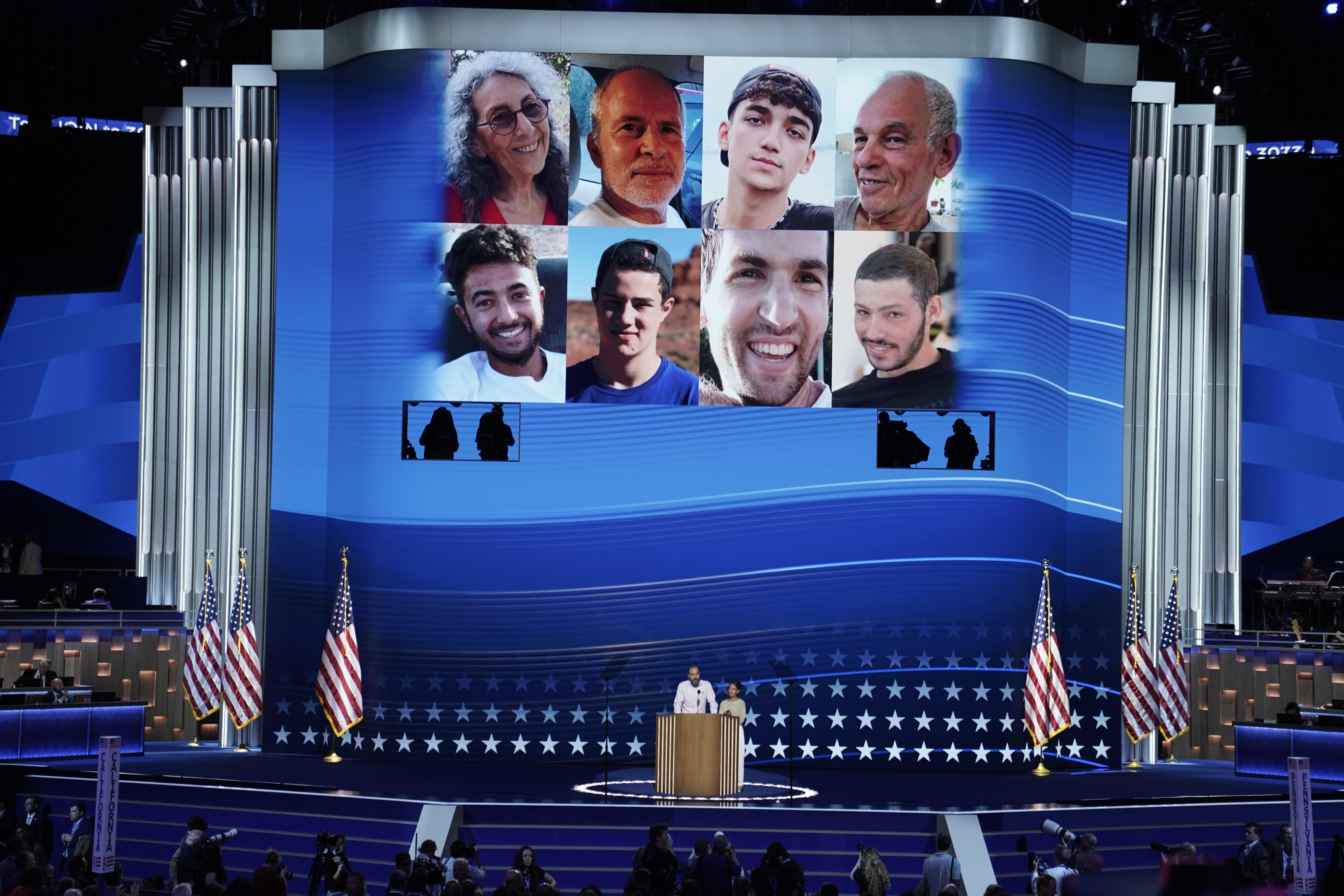 During the speech, photos of Hersh and the seven other American hostages remaining in captivity were shown on the hall’s main screens.