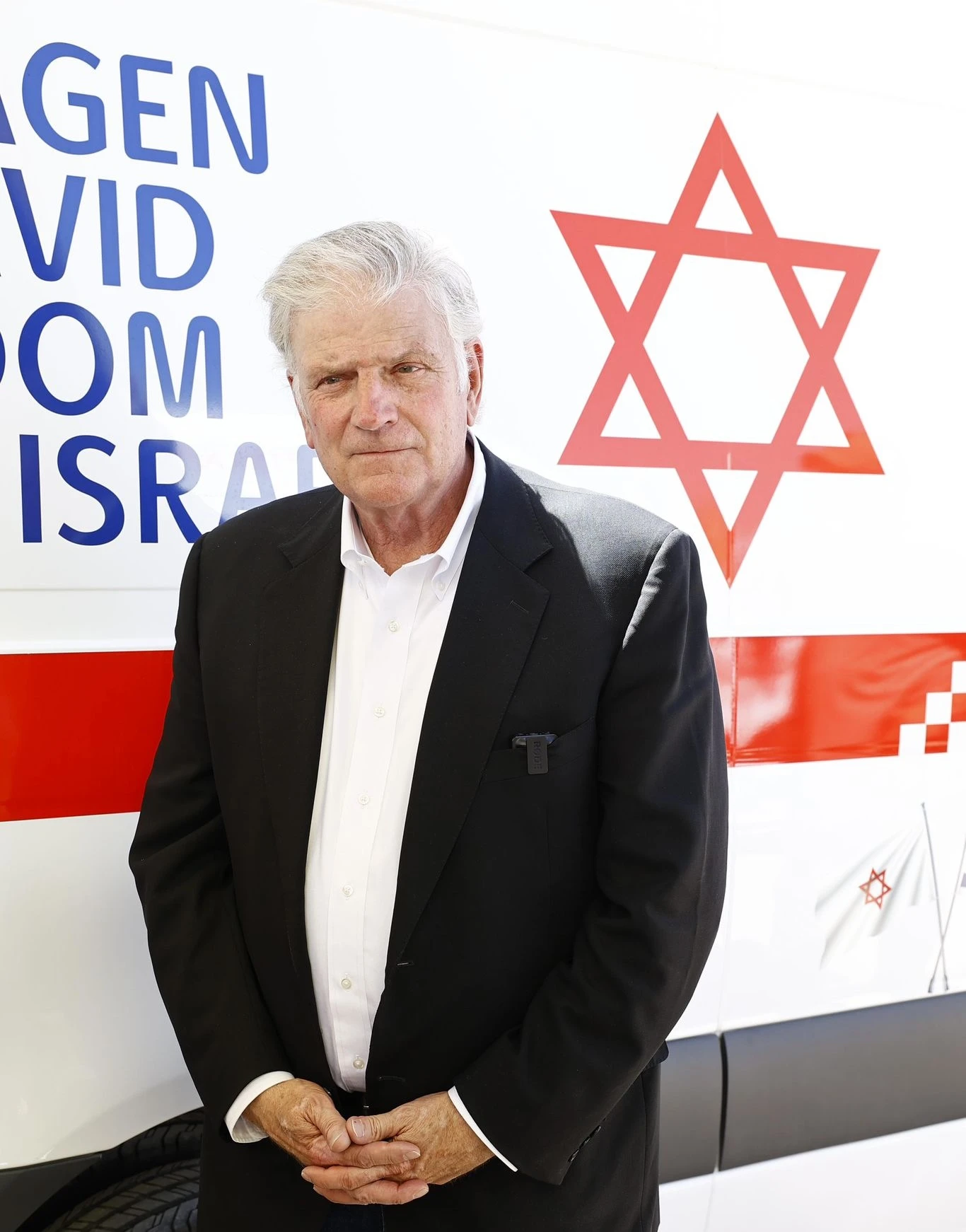 Reverend Franklin Graham in front of an ambulance donated to Magen David Adom (Photo courtesy of Eliral Avital/Magen David Adom)