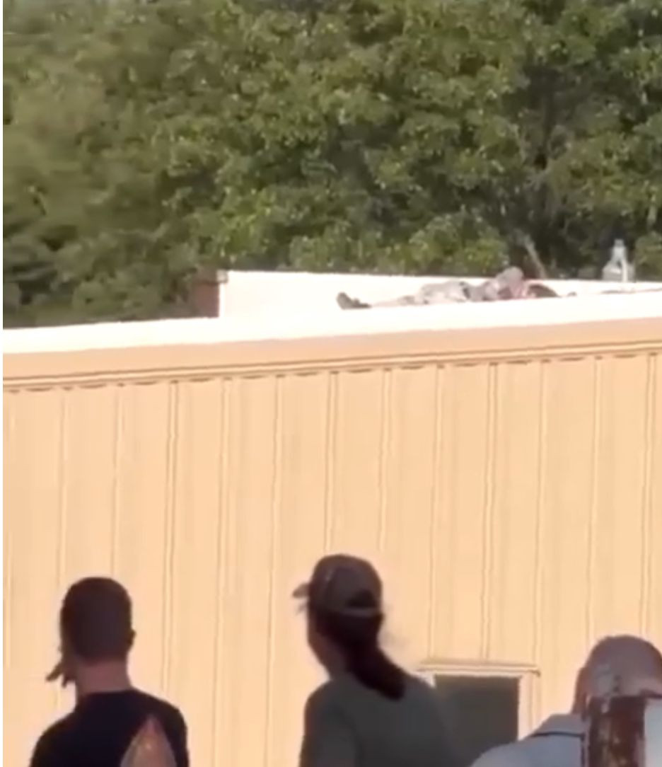“About five to seven minutes [into] Trump speaking – I’m estimating – we noticed a guy crawling, army crawling, you know, bear crawling, up the roof of the building beside us, fifty feet away from us.”