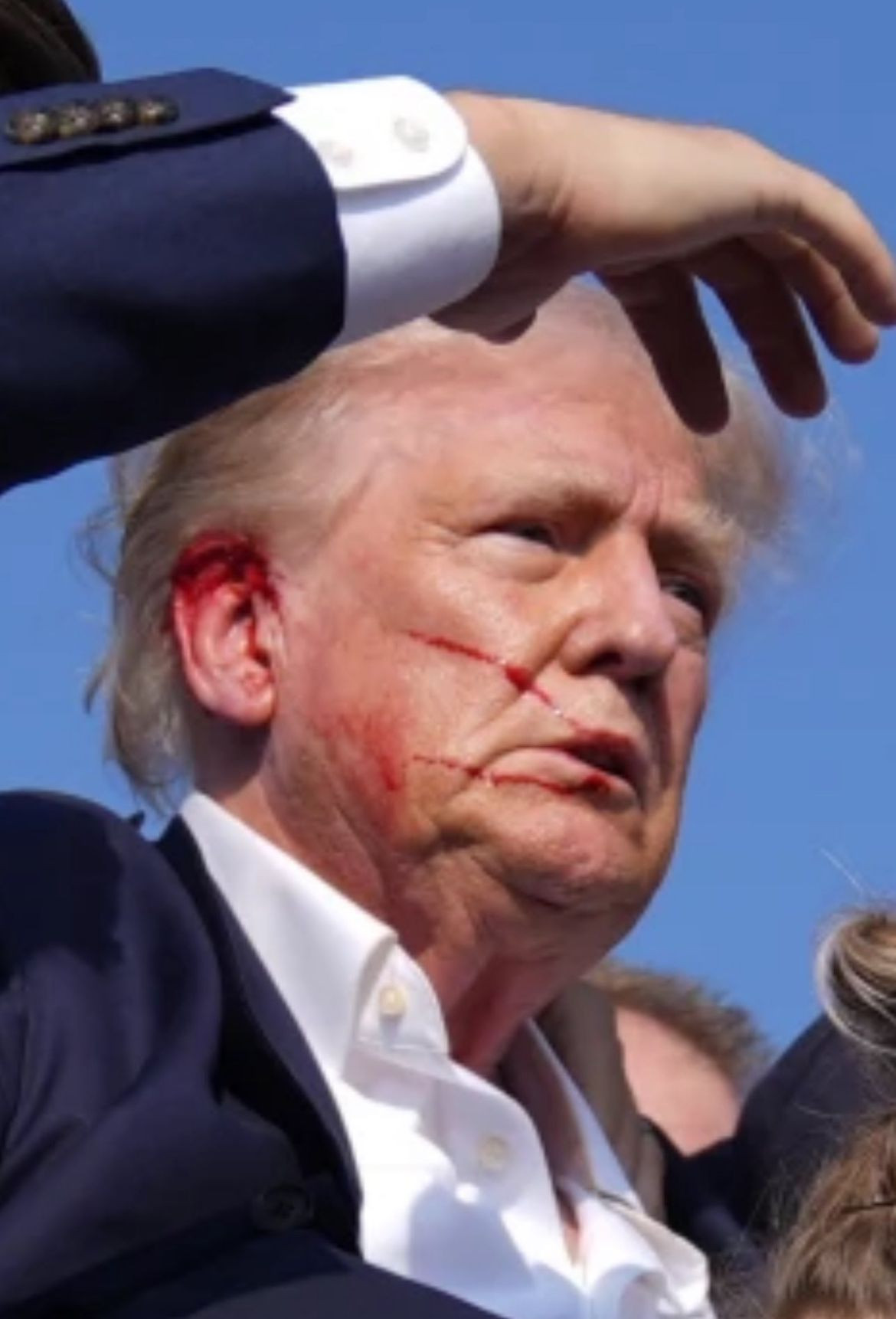 Instead, Trump was just grazed in the right ear and left the stage alive, defiant, pumping his fist in the air, and shouting, “Fight, fight, fight!”