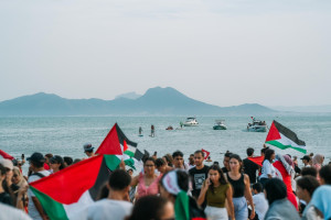 On Tuesday night, crowds of supporters gathered on the docks of the Sidi Bou Said port in Tunisia, singing, waving flags, and setting of flares and fireworks in support of the flotilla’s stated mission to provide humanitarian aid to Gaza.