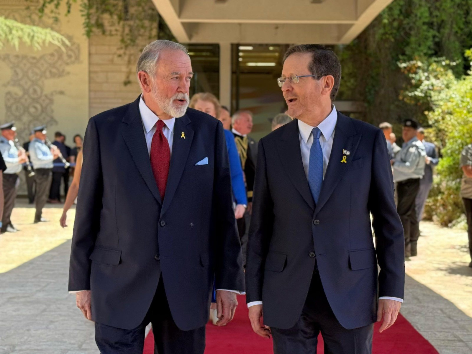 As the two men spoke to the media at the official Presidential Residence, Herzog praised Huckabee’s deep Christian faith, his profound love for Israel and the Jewish people, and his “vocal solidarity and commitment as we fight to defend our people and to bring each and every single one of our hostages back home.”
