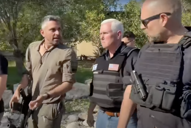 IDF Sgt. Malespin tours site of Oct. 7 devastation on Kibbutz Aza with former US VP Mike Pence