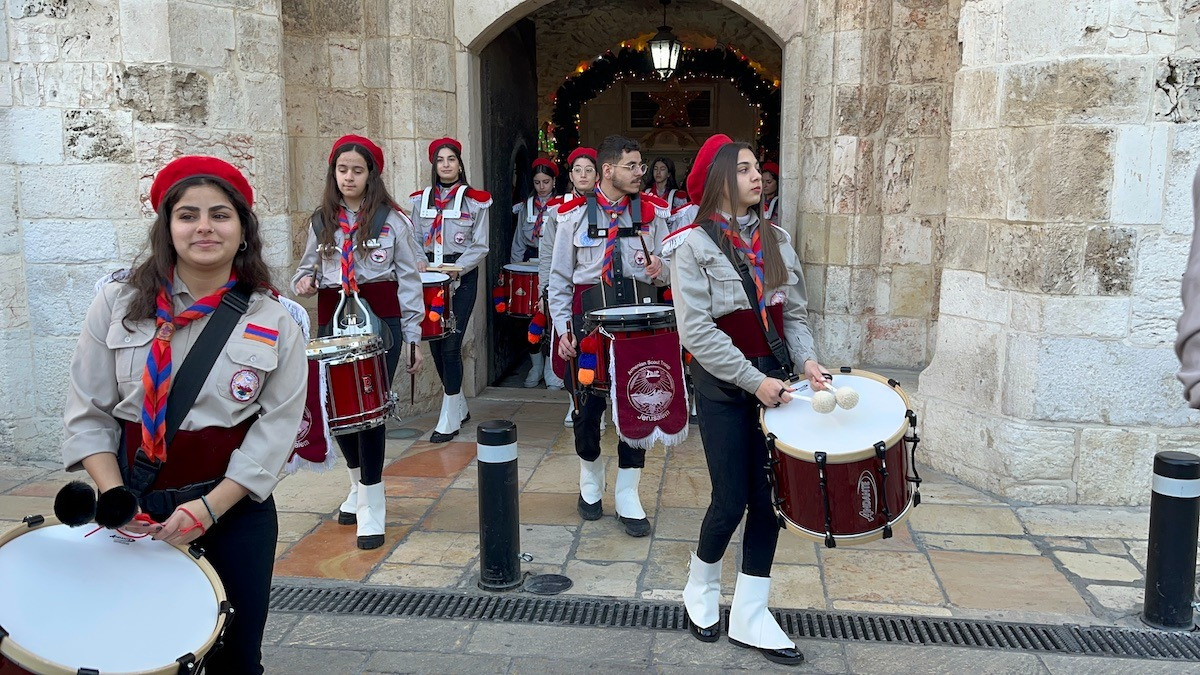 JERUSALEM—The Armenian Quarter of the Old City was bustling this morning as scouts lined up with drums, bagpipes and flags for a march in Bethlehem to celebrate Christmas.