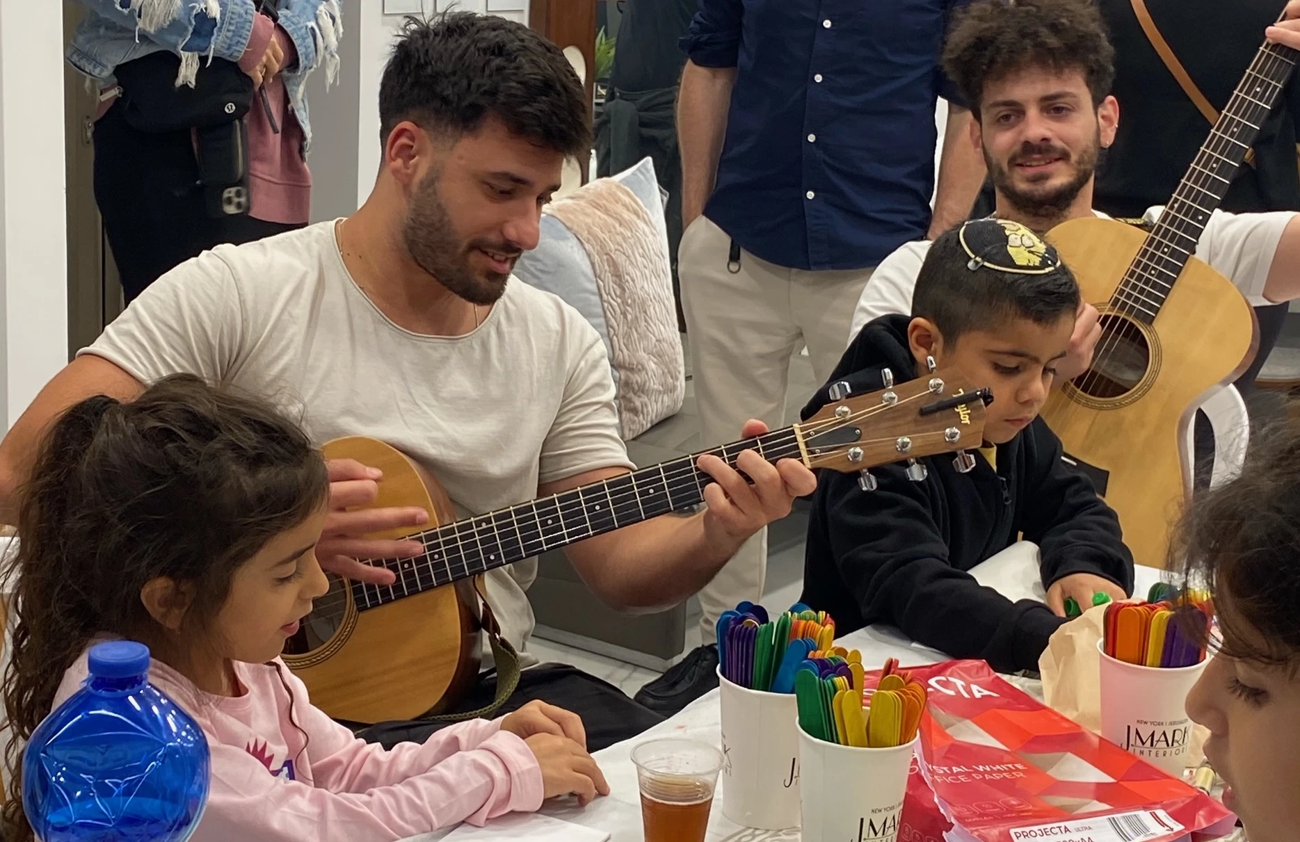 Arts and crafts and movies for the kids. Pizza and popcorn. Falafel and cotton candy. Singing and smiles. Volunteers stepped up in a way that still astounds me, including all of Jeffrey’s staff, family and friends, as well as Ruth and Francis, Christian friends I had met only yesterday on a webinar briefing I hosted at 4 a.m. and who happened to be visiting, and my own children. Everyone wanted to do something to help.