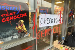 The Israeli embassy in The Hague was vandalized by three individuals on Tuesday. The suspects were arrested by Dutch police shortly after the attack.