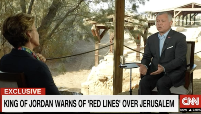In a CNN interview aired on Wednesday, Abdullah was asked if he believed the status quo in Jerusalem, including Jordan’s role in overseeing activities on the Temple Mount, was endangered.
