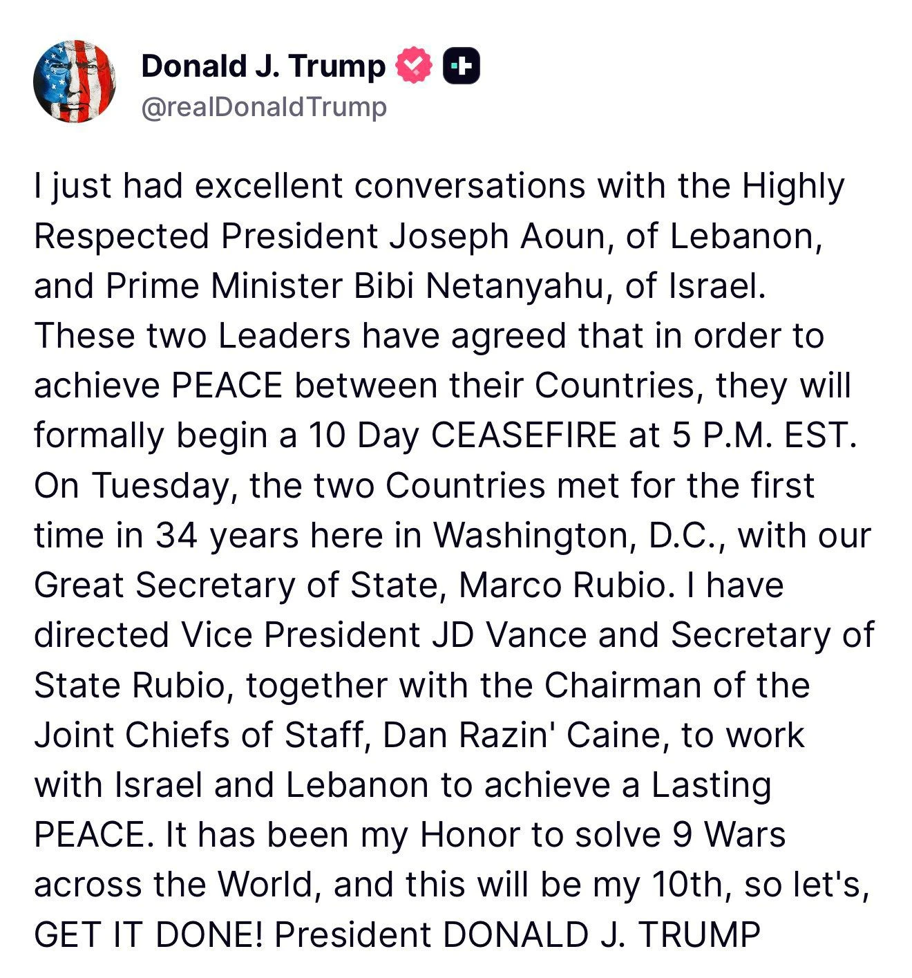 In the coming hours, the rumors of a 10-day Trump-imposed ceasefire are confirmed.