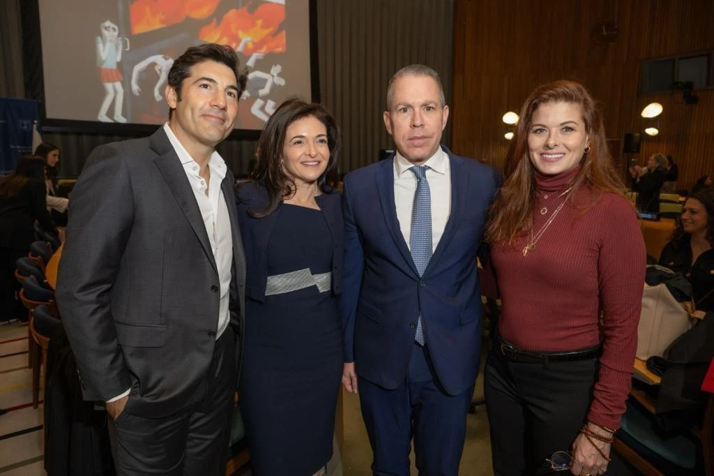 2023년 12월 4일, 이스라엘 여성에 대한 하마스 성폭력에 관한 유엔 세션에 참석한 톰 번탈, 셰릴 샌드버그, 길라드 에르단 (사진 제공)