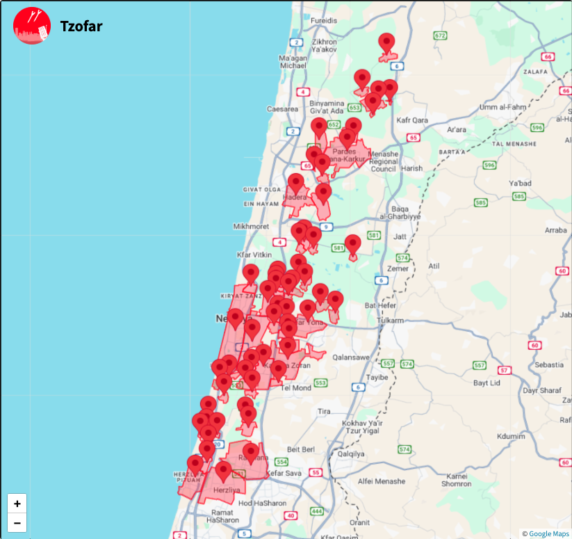Following sirens that sounded in central Israel, the IDF announced that eight projectiles crossed from Lebanon into Israeli territory, the majority of which were intercepted. We are looking into the reports regarding projectile or shrapnel falls.