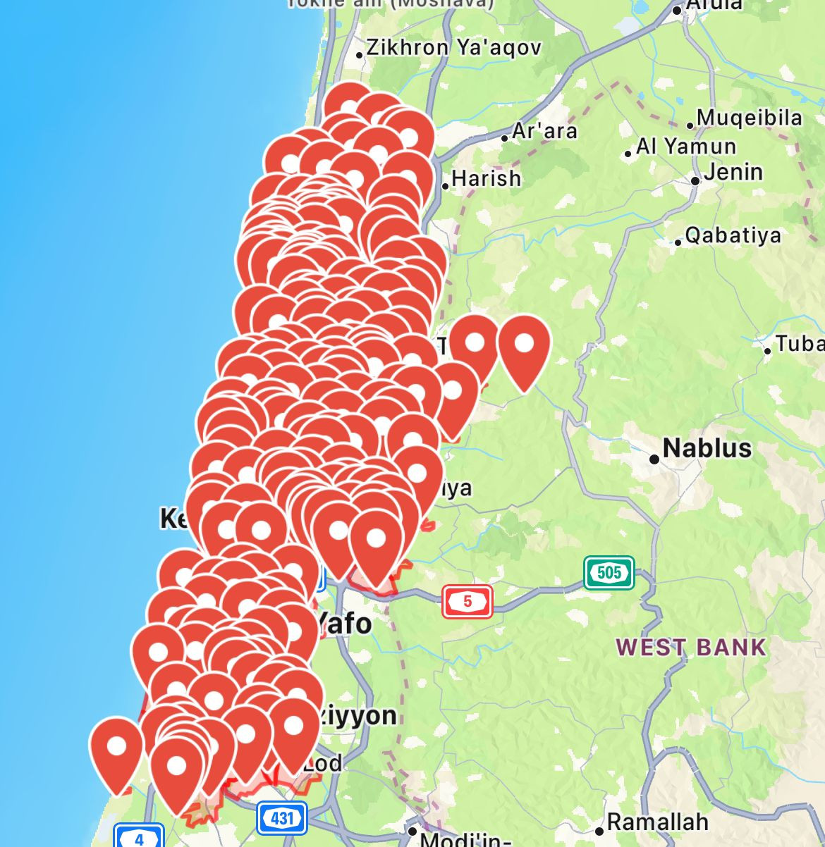 The attack triggered alarm sirens in over 200 towns in the greater Tel Aviv area, from Hadera and Caesarea in the north all the way to Palmahim in the south.