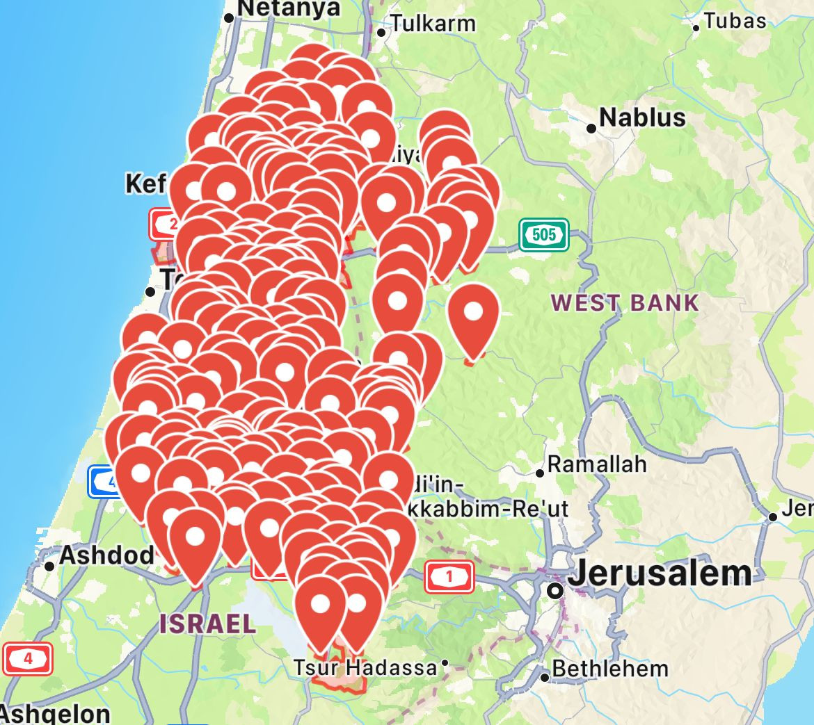 Alarm sirens were activated in Tel Aviv, Holon, Rishon Lezion, Bat Yam, and several other nearby towns. Impacts were reported in an open area near Holon and in the area of Kfar Habad.