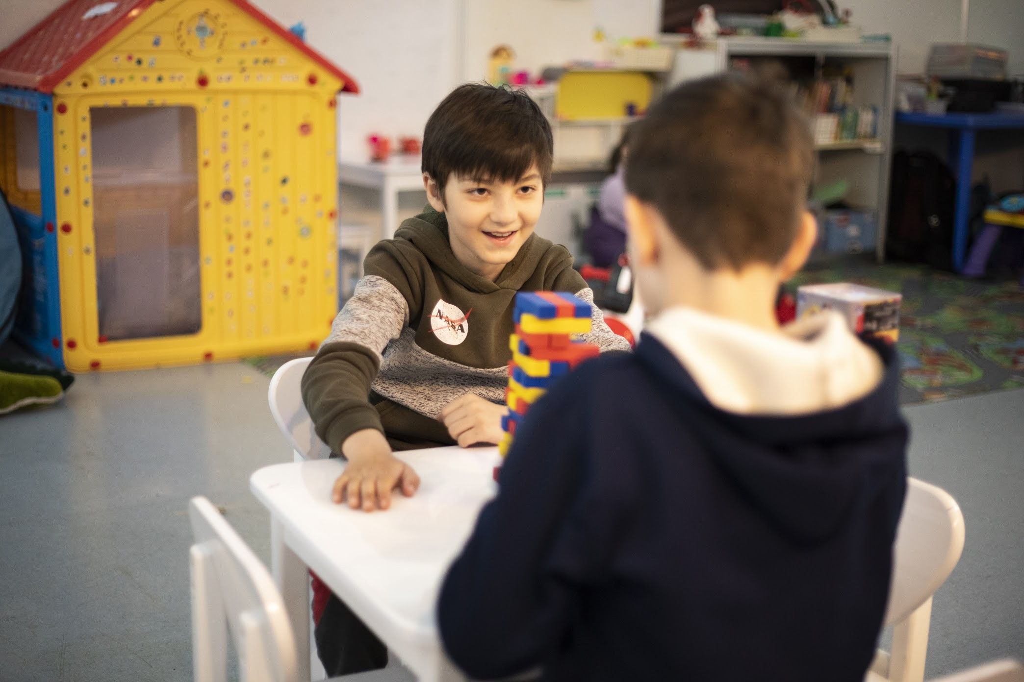 “We have specific things that we put in a safe space because they help recreate the feeling of home,” Khromchenco explained. “We created a space where kids could come and play and express themselves through painting or through doing something by connecting with each other. And that’s what happened. And it was quite amazing – the feeling of it, of starting with nothing.”