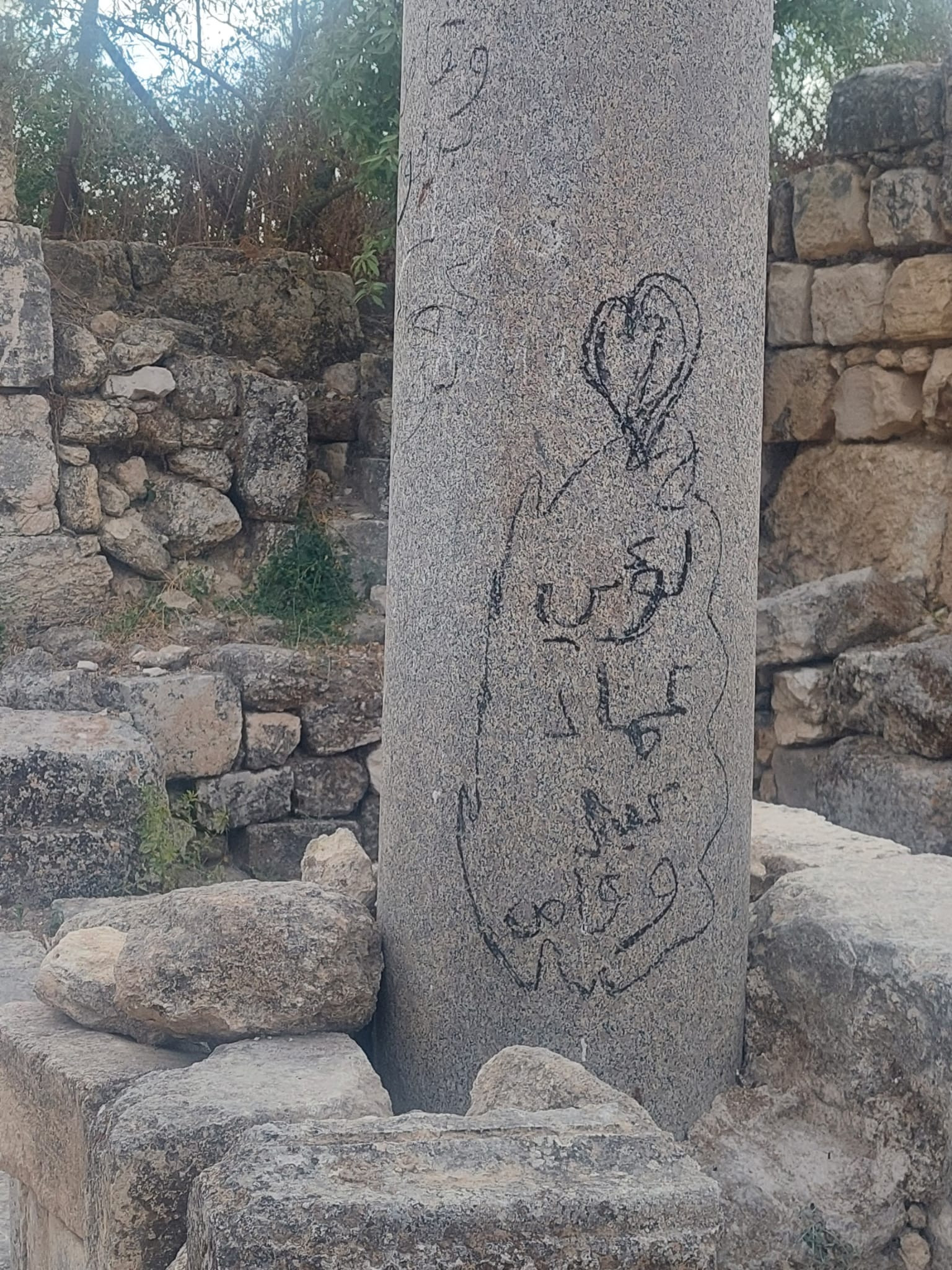 Archaeological artifacts in the biblical site of Sebastia in the West Bank were found damaged, burnt and painted on with Arabic writing