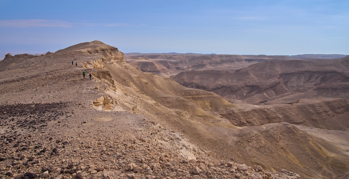 Situated in southern Israel and bordered by Egypt to the west and the Arava to the south, the Negev boasts rocky mountains, craters, and wadis (dry riverbeds); its name originates from Hebrew “Negev” נגב, translated 'dry’ or ‘south.’