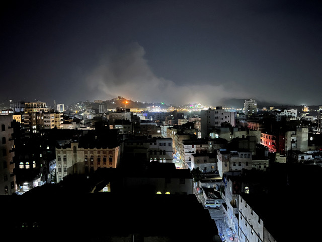 Fumaça se eleva do local de um ataque aéreo dos EUA, em Sanaa, Iêmen, em 19 de abril de 2025. (Foto: Reuters)
