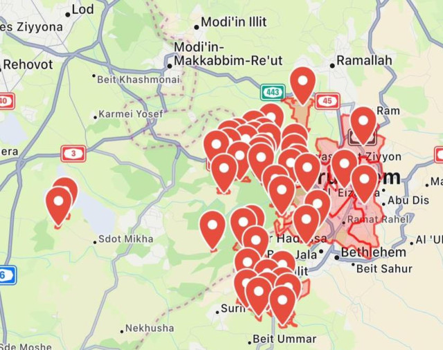 A third confirmed hit landed near the town of Mevaseret Zion, just opposite Jerusalem.