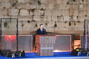 Herzog spoke at the state opening ceremony for Memorial Day at the Western Wall Plaza in Jerusalem.