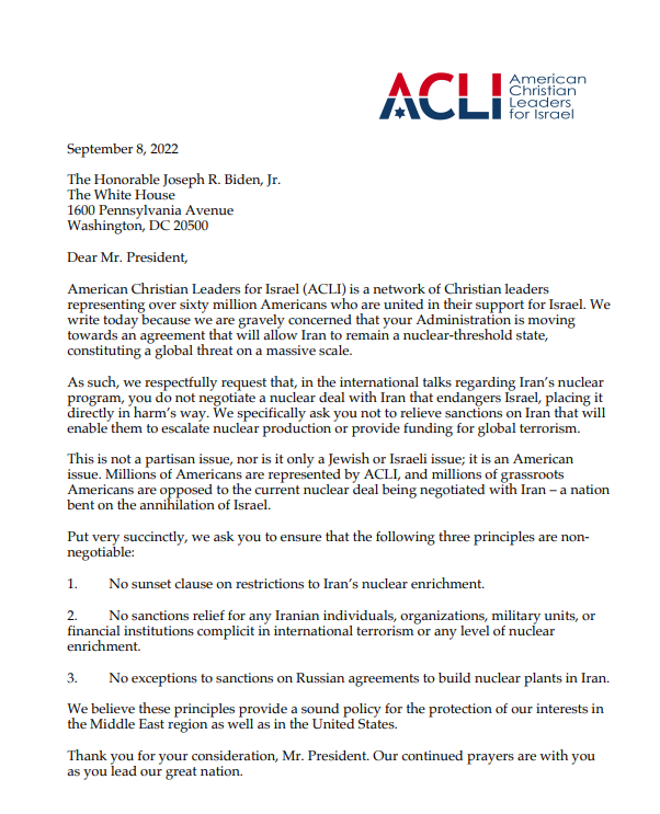 These are just some of the reasons I have joined with more than 60 Evangelical leaders to write a letter to President Biden urging him to abandon his feverish efforts to persuade Tehran to agree to such a deal.